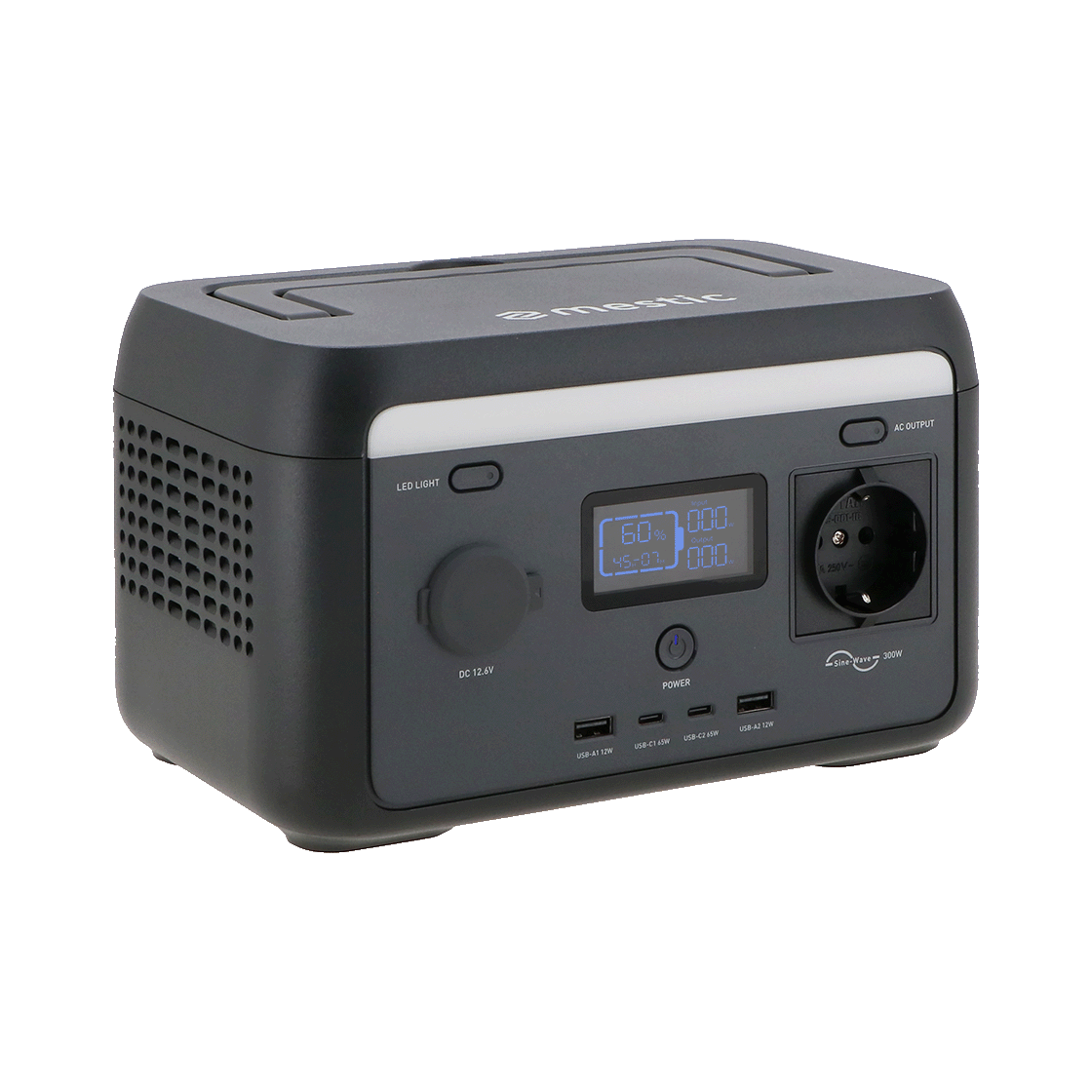 La Mestic Power Station MPS-300 est votre meilleure amie pendant vos vacances coupées de tous réseaux. L'appareil vous permet de recharger facilement divers appareils électriques. Combinez-le avec le panneau Solar Foldable et profitez d'une énergie verte autoproduite où que vous soyez.