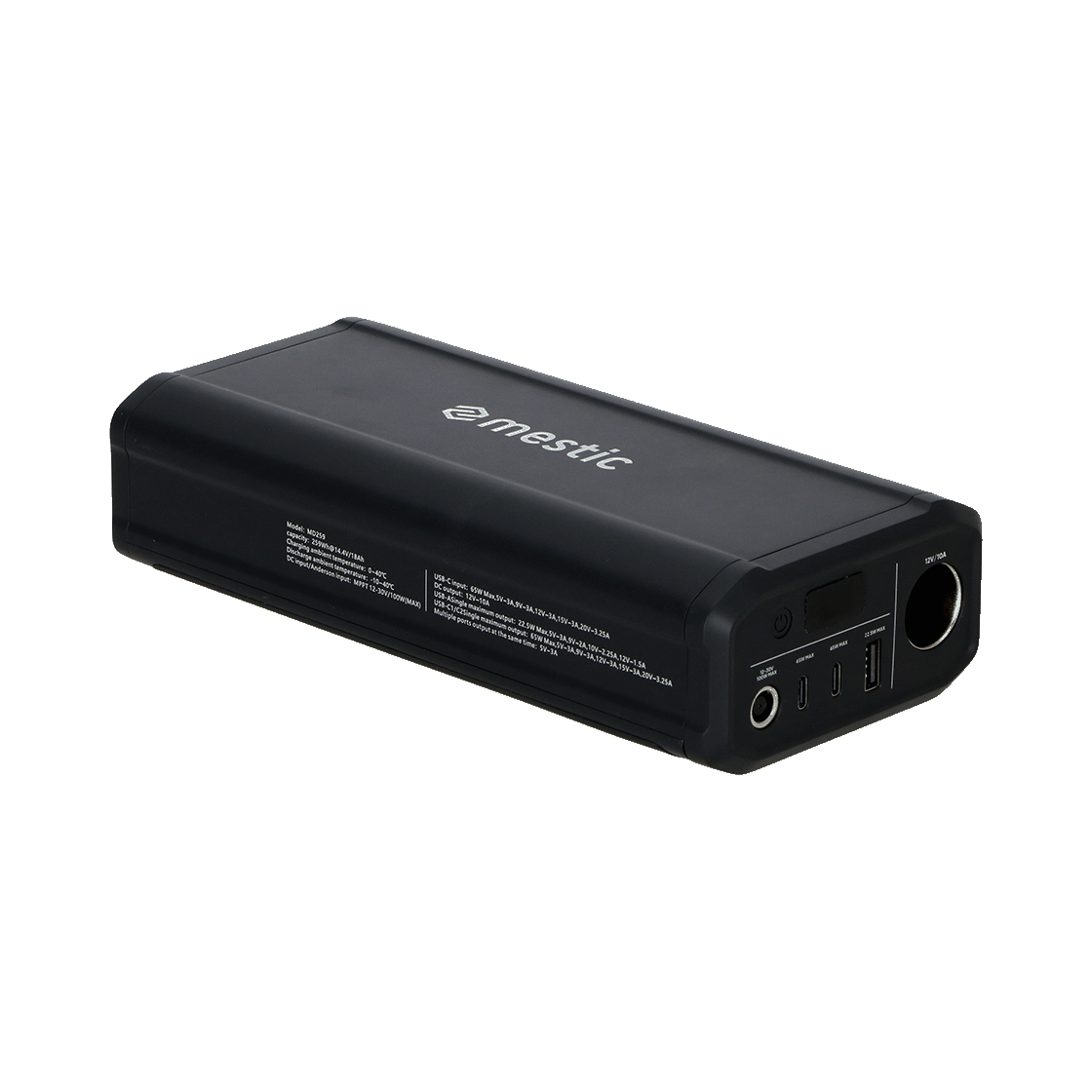 - Recharge via le secteur ou un panneau solaire (max. 100 W)